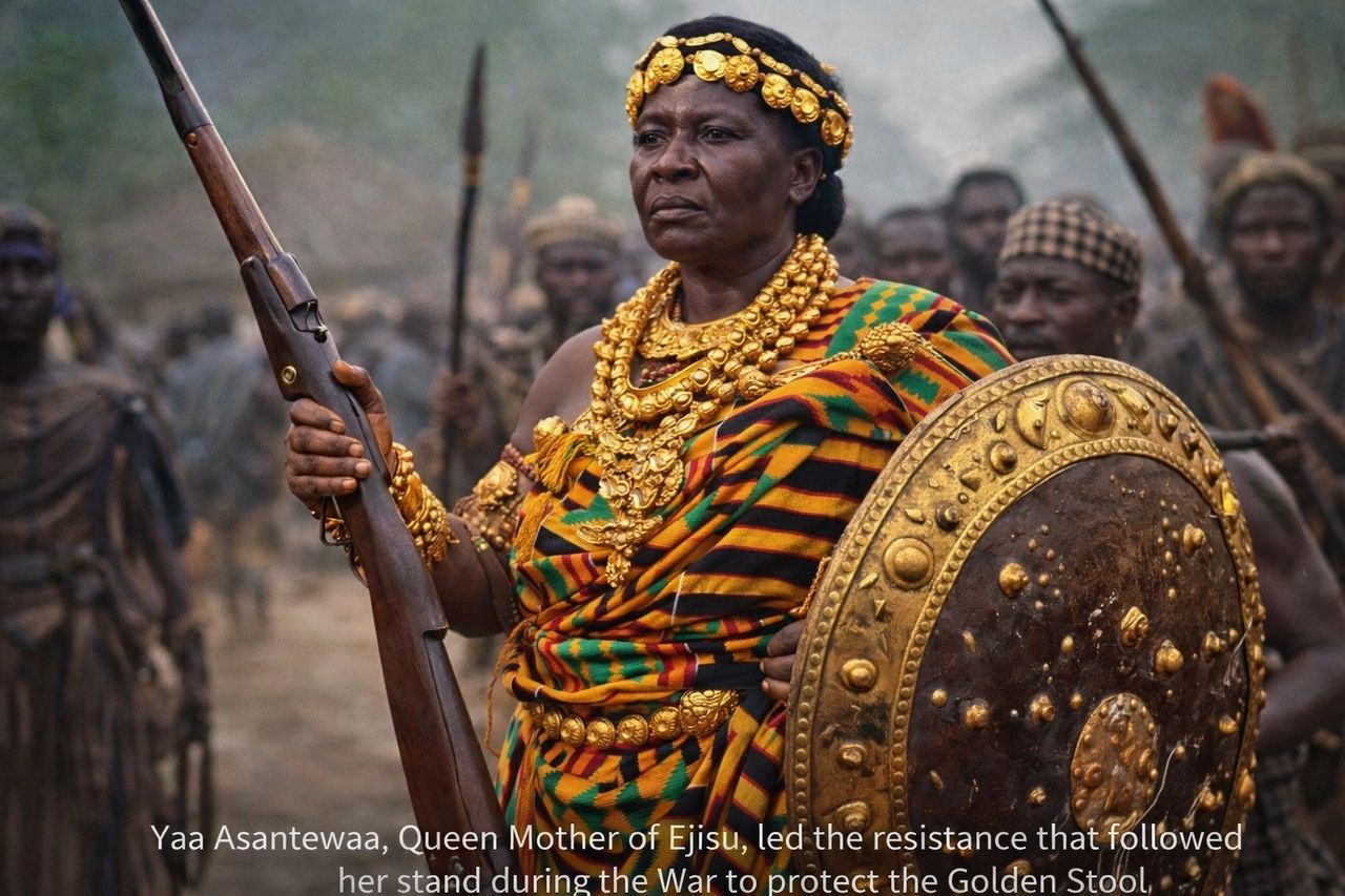 She lifted a gun, fired a shot into the air, and declared that if the men would not fight, the women would. That moment broke the paralysis. It sparked the War of the Golden Stool — the final, fierce stand against British rule.